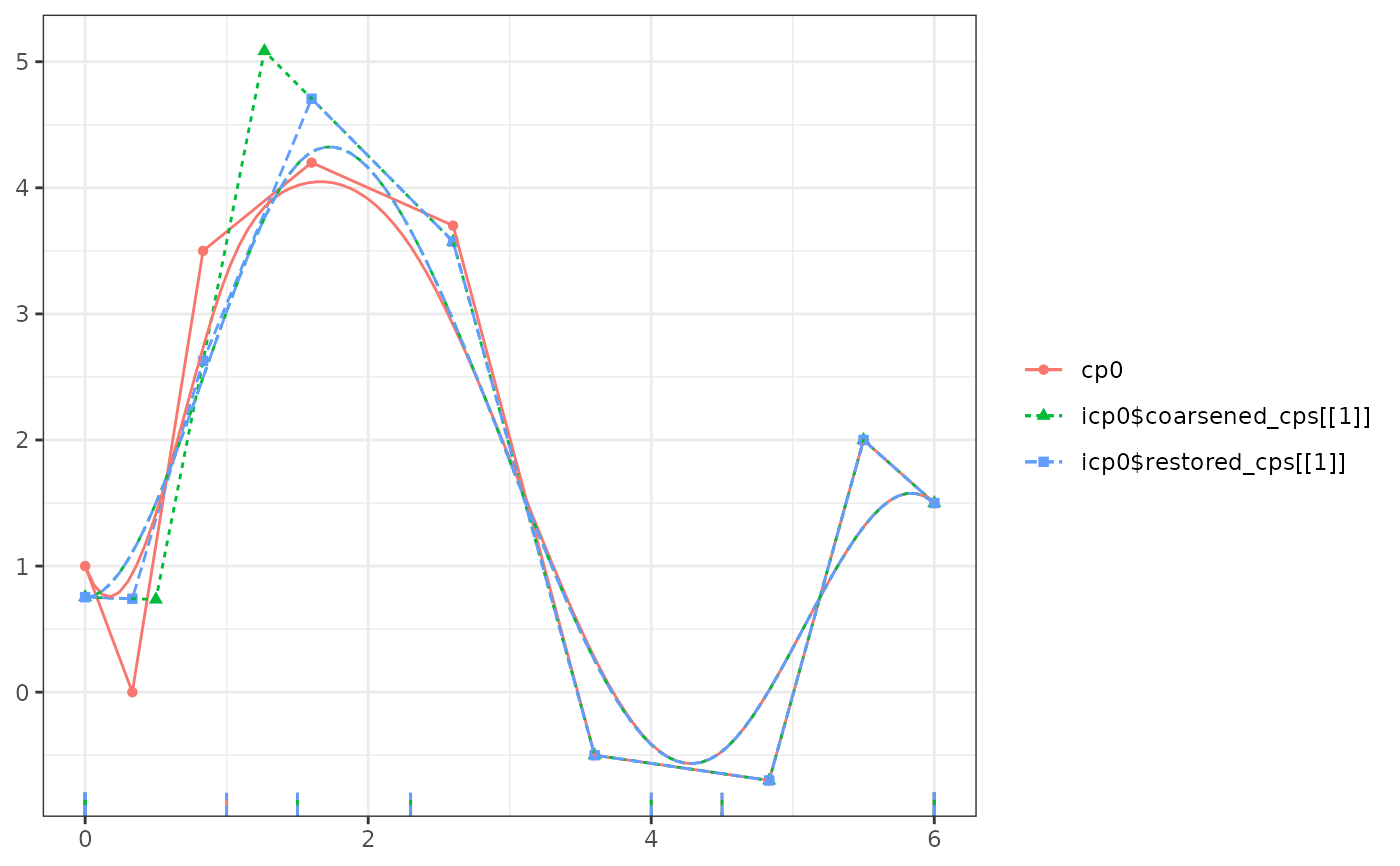 plot(cp0, icp0$coarsened_cps[[1]], icp0$restored_cps[[1]], color = TRUE, show_spline = TRUE)